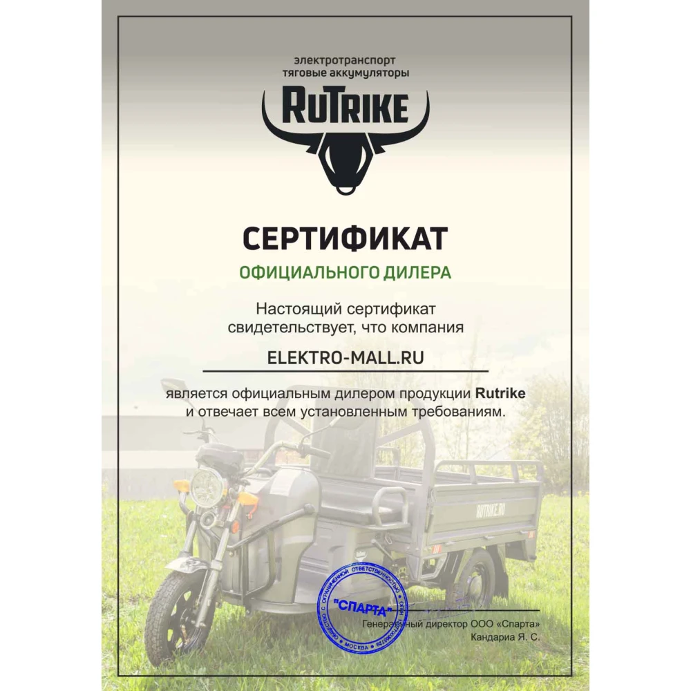 Техника с мощностью электродвижка в 1000 Вт и емкостью батареи 120 А*ч рассчитана на грузоподъемность до 600 кг, способна разогнаться до комфортной безопасной скорости 25 км/час и преодолеть на одной подзарядке дистанцию до 80 км. Для управления электрорикшей достаточно наличие любого водительского удостоверения. Само правление простое, не требует особого обучения. Со слов пользователей техника экономичная, затраты за 100 км пути составляют 7 руб. Модель оснащена барабанными тормозами, надежными и качественными, гарантирующими стопроцентное торможение.