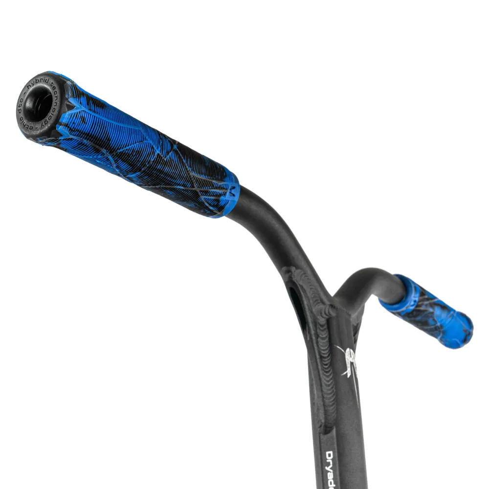 Высота руля 620 мм и его Y-образная форма идеально подходят для райдеров ростом от 140 до 165 см, обеспечивая оптимальный контроль. Алюминиевая дека шириной 120 мм и длиной 500 мм предлагает надежность и устойчивость, которые вы оцените во время выполнения сложных трюков. Синий цвет на грипсах, дисках и хомуте придает самокату яркий и запоминающийся вид, делая его неотъемлемой частью вашего уникального стиля.